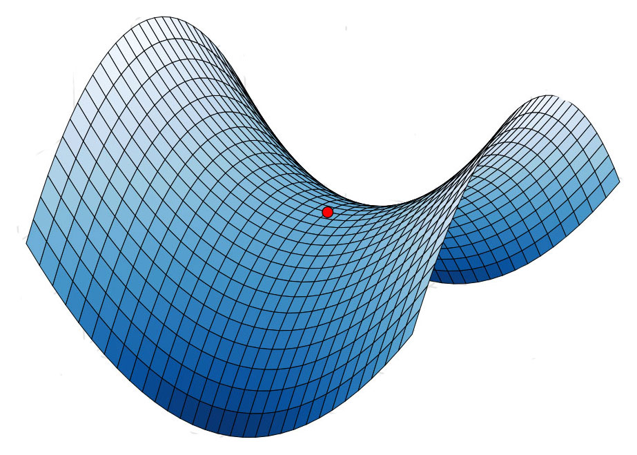 分水嶺の峠は鞍点。 「深層学習における勾配降下法」のGIF動画 |