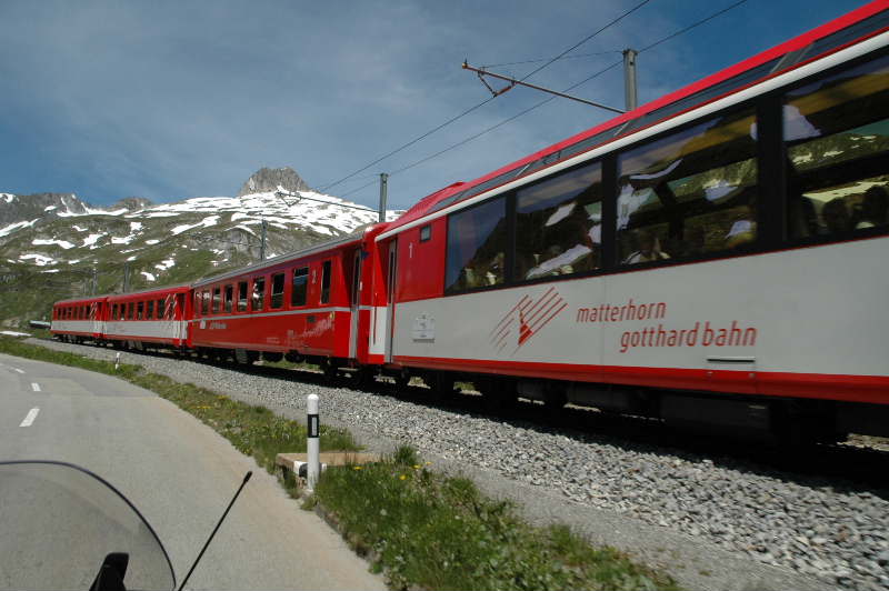 オーバーアルプ峠近くを走る特急列車