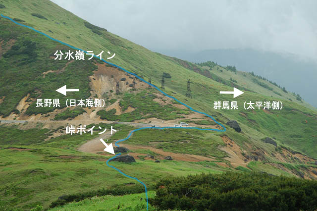 | かつて、峠越えの道は長野県側からは樋沢川の沢沿いにあったが、群馬県側の硫黄鉱山の閉山と共に廃道になり通行できない。現在は観光・登山・ハイキング客のために須坂と万座を結ぶ上信スカイラインから分水嶺に沿った舗装道路がこの峠まで整備されている。 |