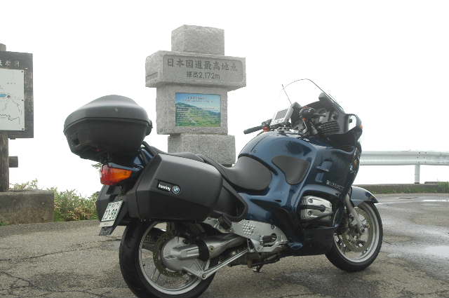 | 山田峠と渋峠の間にある「日本国道最高地点・標高 2172m」 の石碑。バイクライダー必携の「ツーリンブマップル関東甲信越」(昭文社)の69ページの地図と123ページの詳細地図にその記載が欠如しているのはどうしたことか。 |