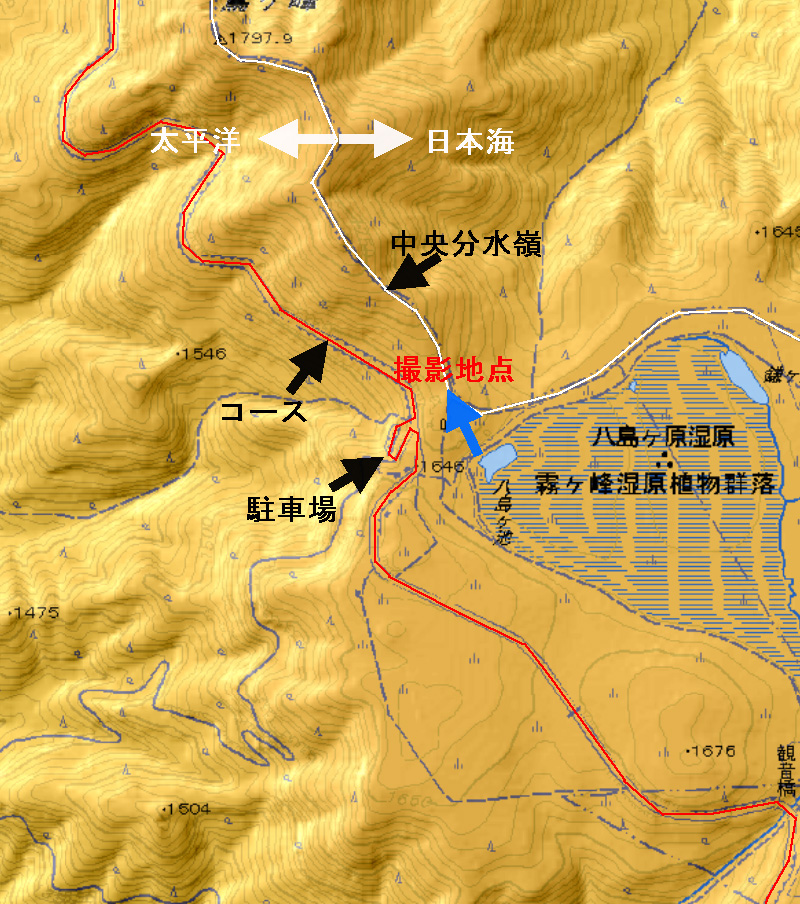 鷲ヶ峰南稜〜八島ヶ原北縁 中央分水嶺 太平洋←→日本海 撮影場所詳細地図 |