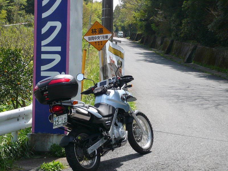 林道走行の注意看板 |