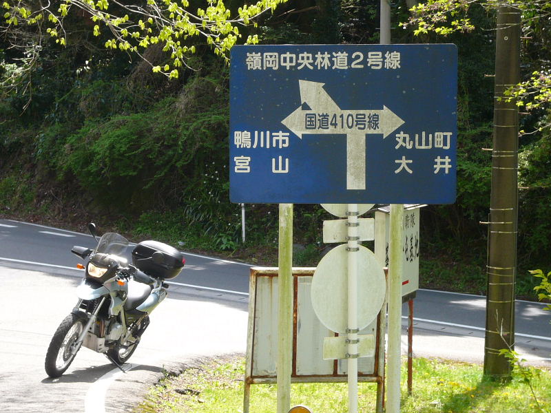 国道410線に出るとまたすぐ峰岡中央第2林道へ入る |