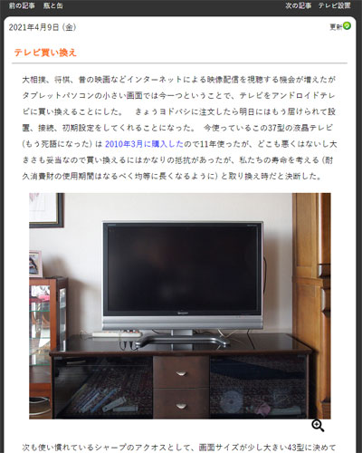 9日(金) テレビ買い替え