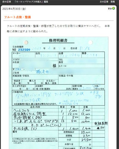 30日(金) フルート点検・整備
