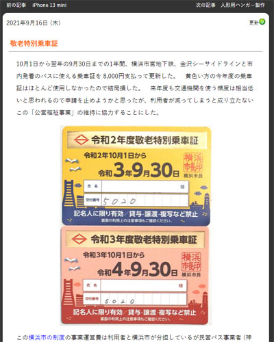 16日(木) 敬老特別乗車証