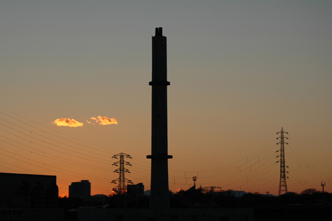 快晴の夕空に輝く雲がぽつんと浮かんでいます。