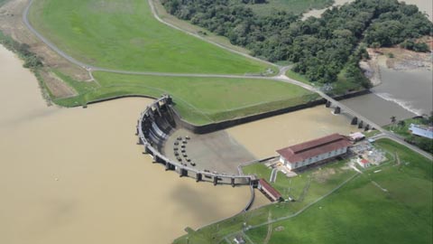 現在の地峡の真中にあるガツン湖 (Lago Gatun) はこの地点でカリブ海に流れるチャグレ川 (Rio Chagres) をダムでせき止めて作られた人造湖です。