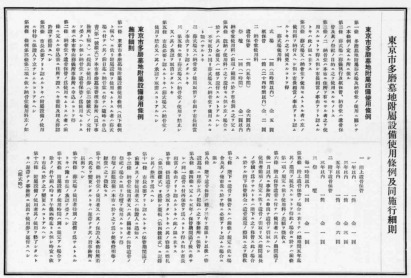 最初は東京市の多摩墓地の使用条例と各種規程です。 掃除料は前払いで1年間から20年間まで規定されています。 この掃除料規程の第4条に20年分を収めるとその後は払わなくてもよいと書かれていますので、その時に上の「永掃」のエンブレムが取り付けられたようです。 この掃除は1年間に20回もしてくれていたようです。 さて、この規程、今は有効ではないようです。 下の4つの画像はクリックすると大きい画像が見えます。
