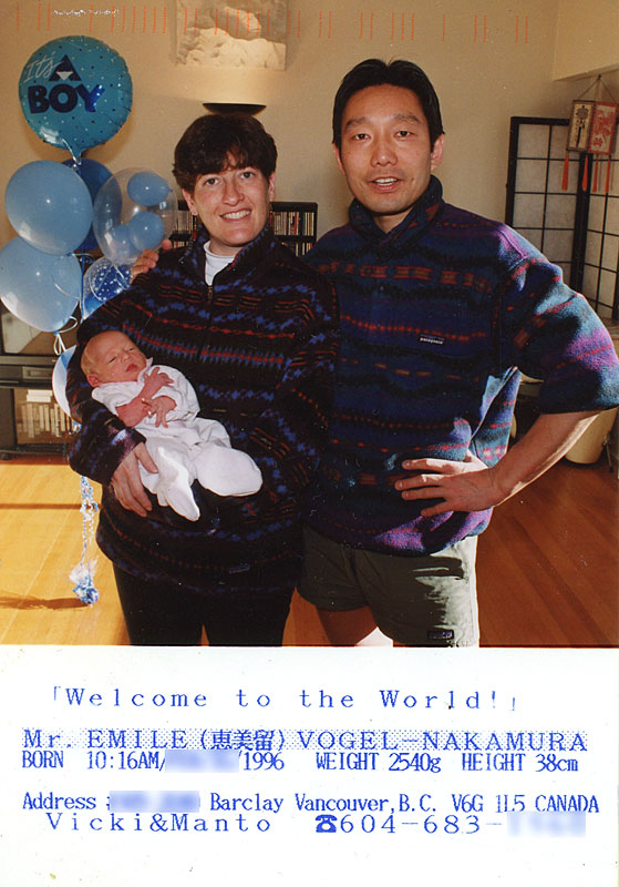二人がカナダに移住してからは会うこともなくなり、しばらく音信は途絶えていました。 最後の連絡は二人がカナダに移住して6年後の1996年に初めての子供が誕生したときに送ってくれた絵葉書です。