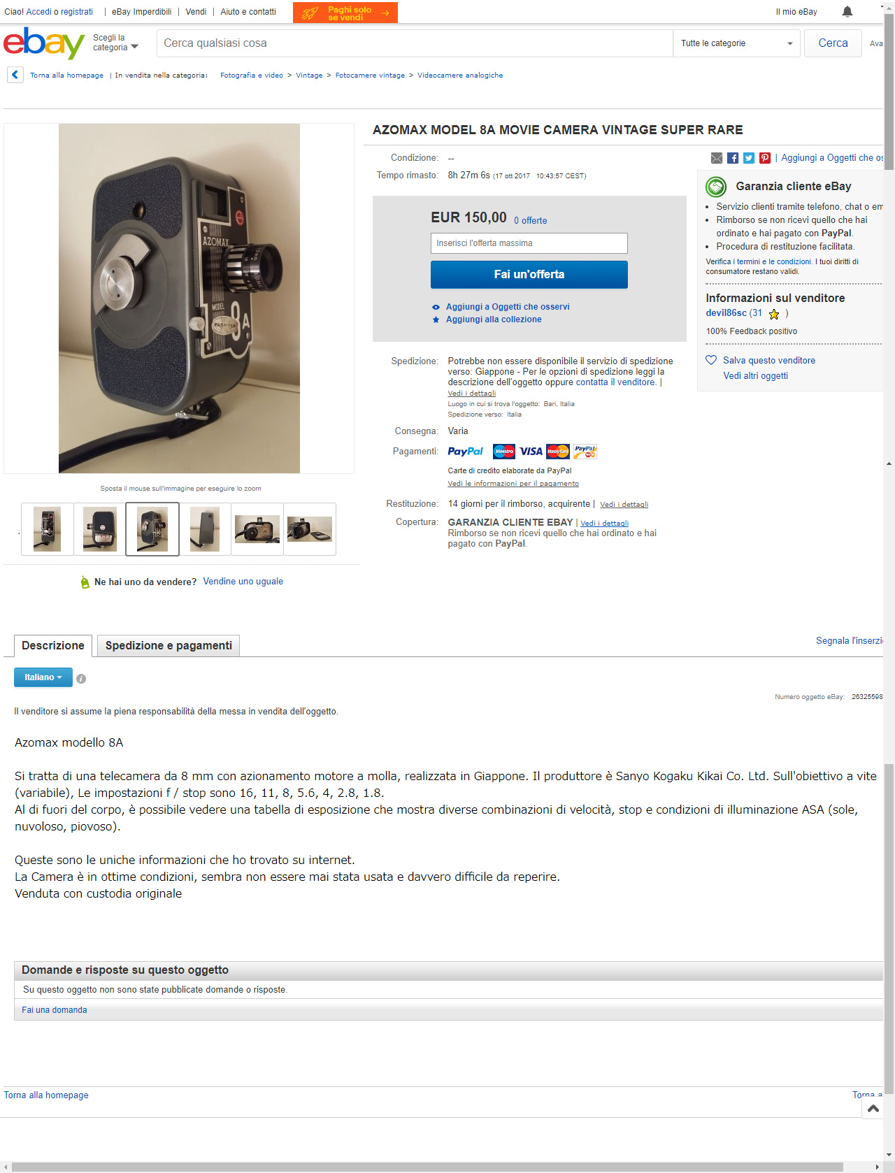 またヤフオクで珍しい8ミリカメラを発見して落札した。 私はこれまで日本製ばかりでなく世界中の8ミリカメラ