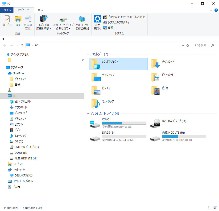 もうこれ以上きれいにはできないと思うが、気になるのが「3Dオブジェクト」という中身が空のフォルダーである。 これは