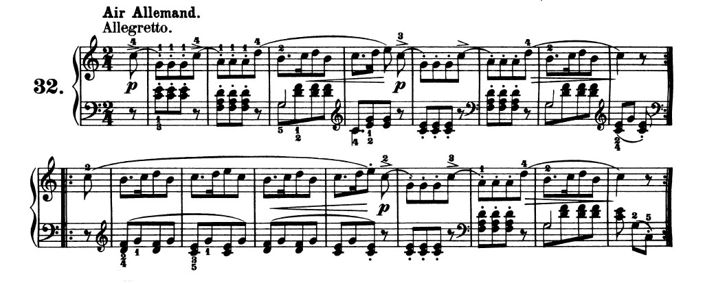 (aria)」、ドイツ語は「アーリエ (Arie)」。 時代によって意味が変化するが、ツェルニーが意図したのは「ドイツ風舞曲」だろうか。