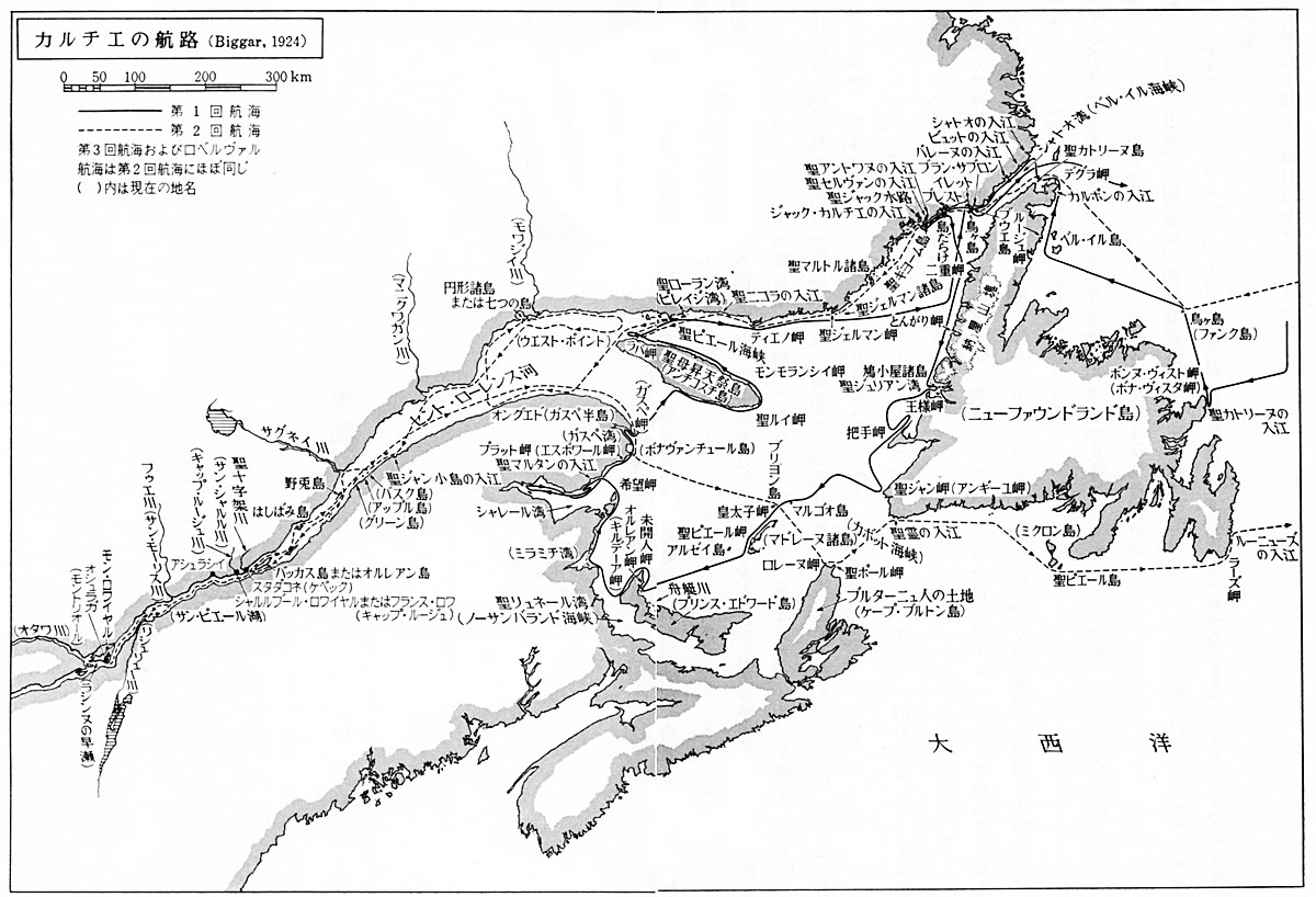 (Jacques Cartier 1491-1557) による1534年から 1542年頃にかけて