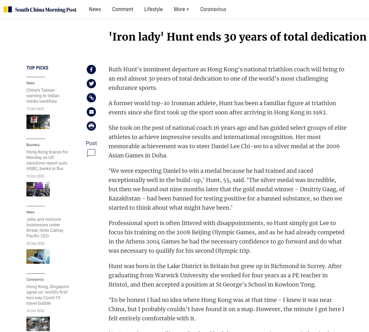 が今どうしているのかが気になって検索したらこんな記事が見つかった。 この記事の日付は分からないが2018年の別の記事では香港トライアスロン協会の会長とあった。