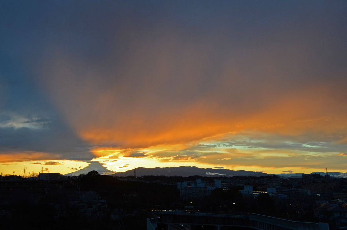 いつもの夕暮れの富士山