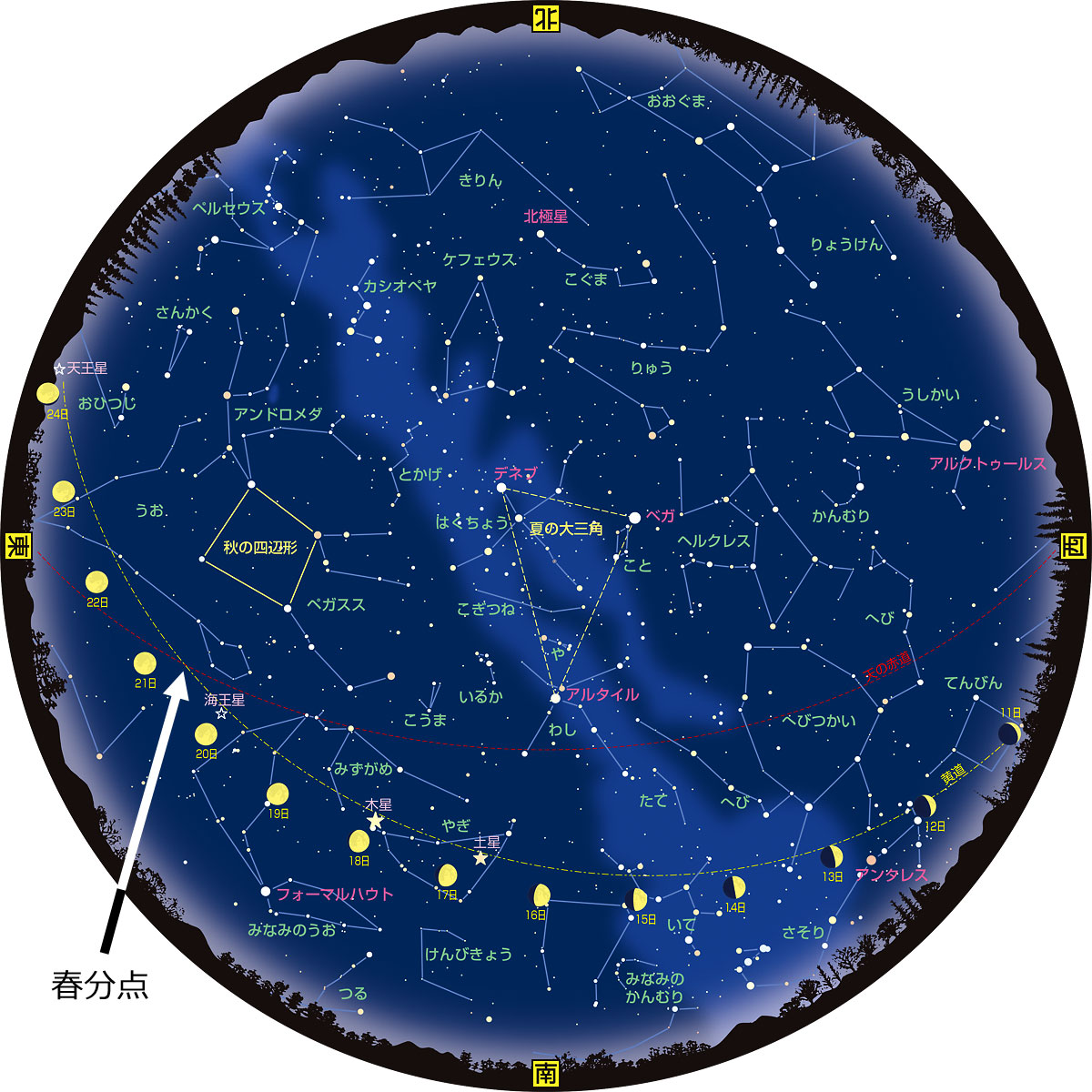 がウェブサイトで 1ヶ月ごとの星空を恒星だけでなく太陽、月、太陽系の惑星の位置を示す「〇〇年〇月の星空」を提供している。