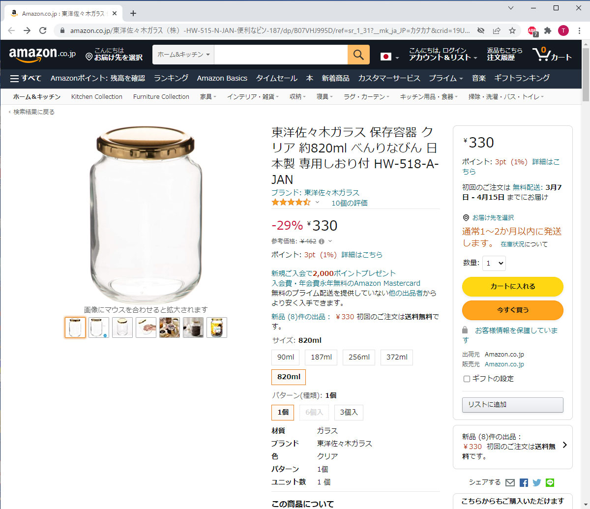 もうすぐいちごが安くなるので1年分のいちごジャム作りの準備をする時期になった。 あいにく大きな瓶はすべて夏みかんジャムに使ってしまったのでストックがなくなってしまった。 瓶だけを買うとアマゾンではこんな値段だ。
