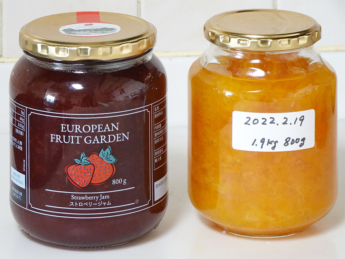 きのう近くの食品スーパーマーケットのロピアでは 800グラム入りの輸入いちごジャムが 299円 で売られていたので買ってしまった。 瓶を買うよりも安い。