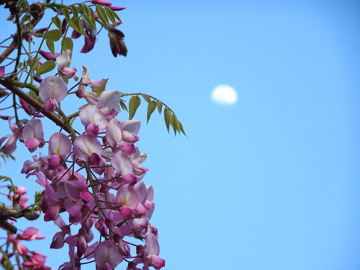 (こんなしゃれた名前で呼ばれている) の藤棚。 1976年に入居して最初に植えられていた桜の木が2年ほどで枯れてしまったので、私が自治会長をしていた時に自治会の事業として作った藤棚なので思い入れが深い。 藤棚の材料は木質が良いのだが長持ちしないことが分かっていたので敢えて無粋な鉄骨と鉄管を採用した。 その後藤の木は見事に伸びて今頃は長く花を垂らしていた。 管理は住宅管理組合に移管したので、棚の錆止め再塗装もきちんと行われて藤の木も庭園業者がよく面倒を見てくれる。 しかし枝が伸びすぎて10年ほど前に大きく剪定したのでそれ以後は花の着きがやや寂しい。 これからの1ヶ月が見ごろである。