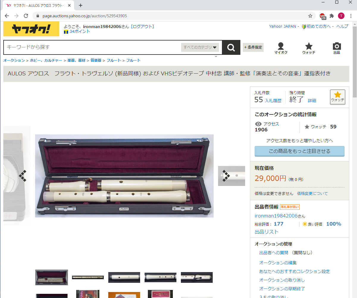 ヤフオクに出品していたフラウト・トラヴェルソが落札された。 入札数とウォッチの数が多いので関心を集めたようだ。