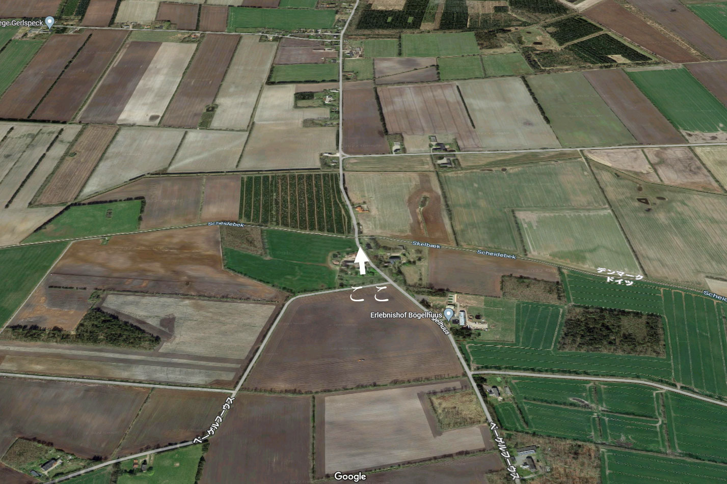 で見てみると川でも峰でもなく広い畑地の真ん中で柵はないし、両国は