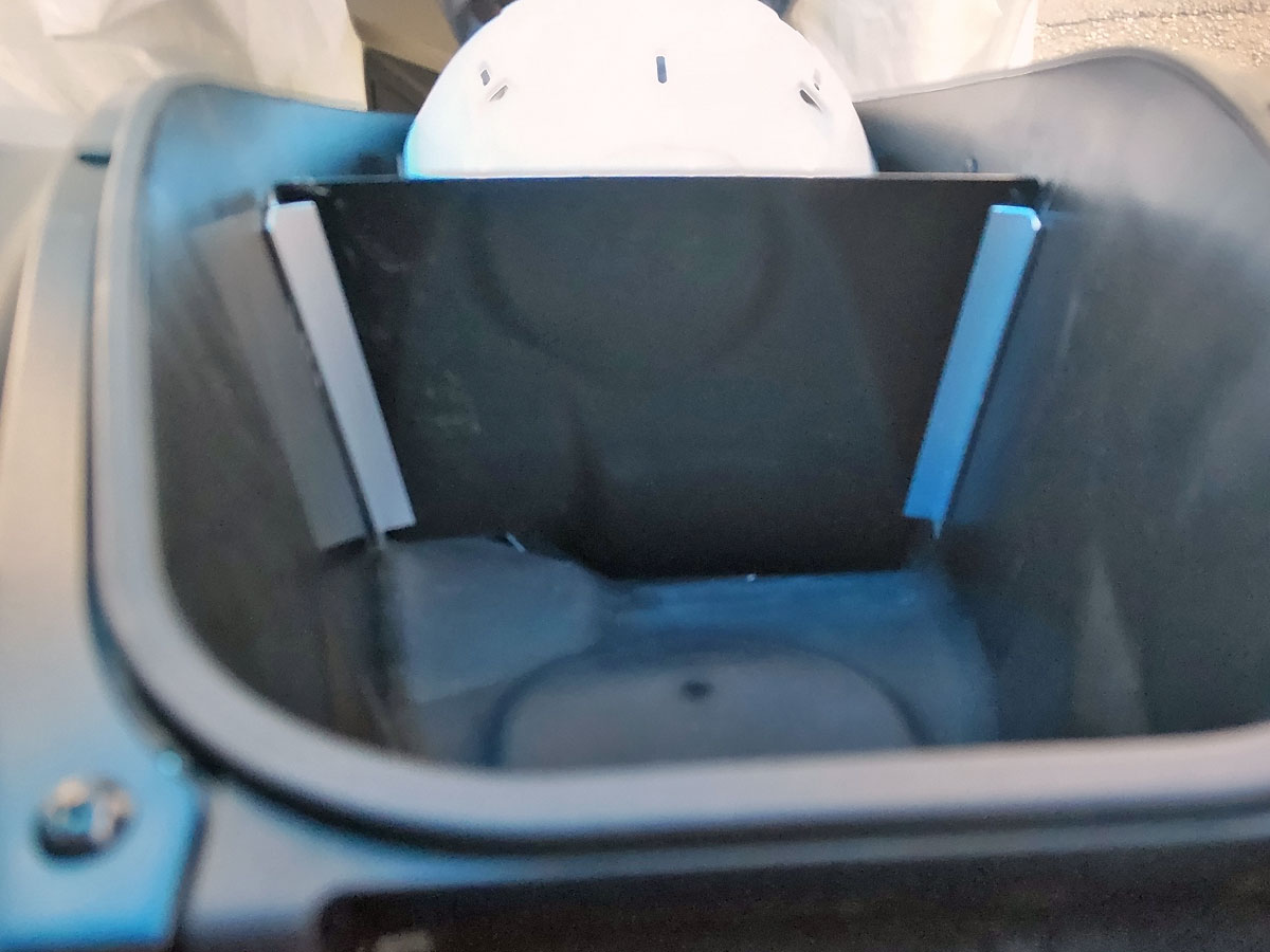 2日の日記に書いたスクーターのシート下のパーティションの失敗、すなわち板を支えるレールに使用したプラスチックアングルの破損、当面はガムテープで補強して使っていた。