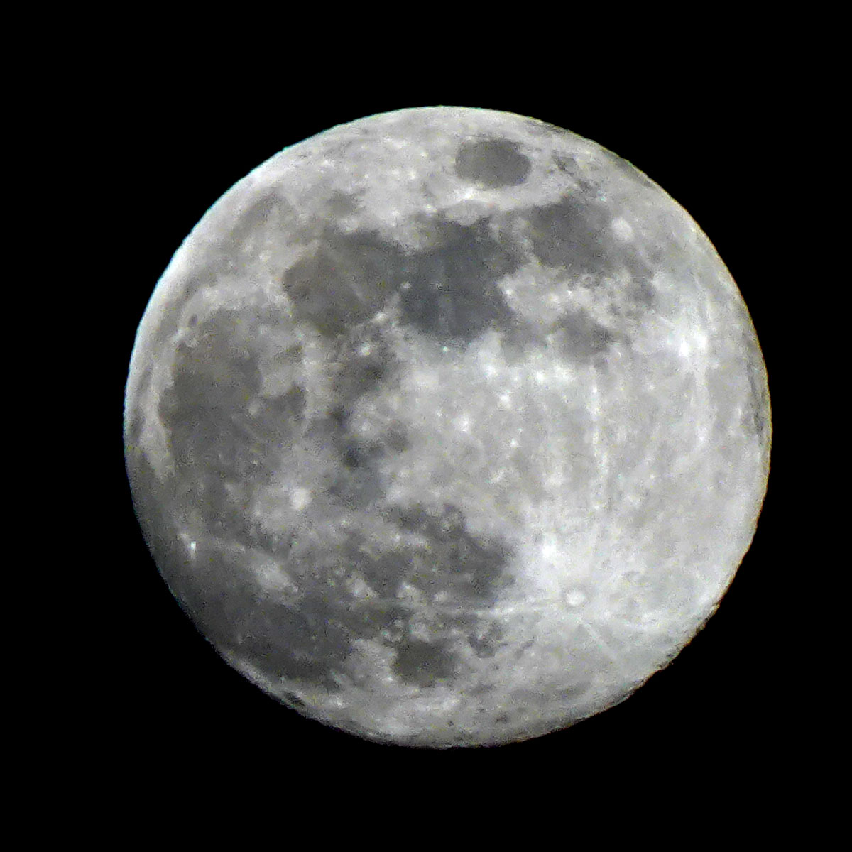 見上げると、天空近くの高い軌道に十四日の月。 あまりに高すぎて南側のベランダからは見えないので北側の通路から三脚でカメラを突き出してほぼ真上に昇った月の姿をとらえた。