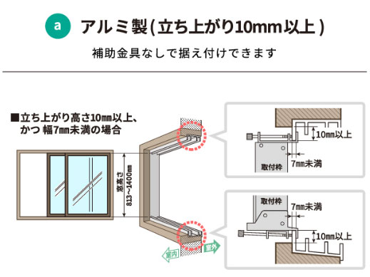 (「下立ち上がり」の内側に引っ掛けて固定する方法)