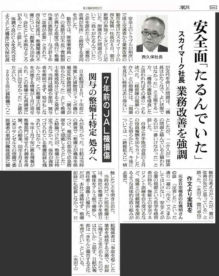 日 朝日新聞 東京本社 朝刊