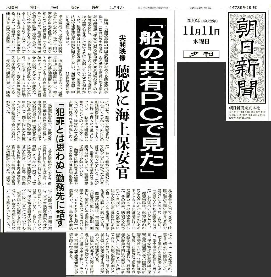 日 朝日新聞 夕刊 東京本社