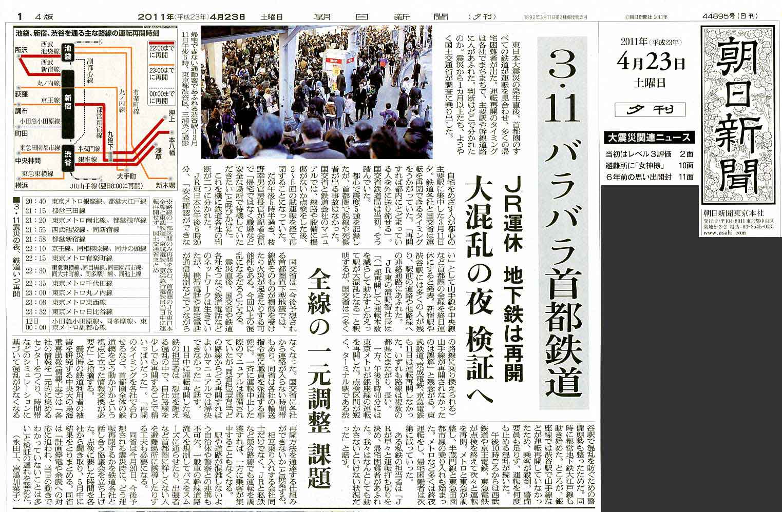日 朝日新聞 夕刊 東京本社