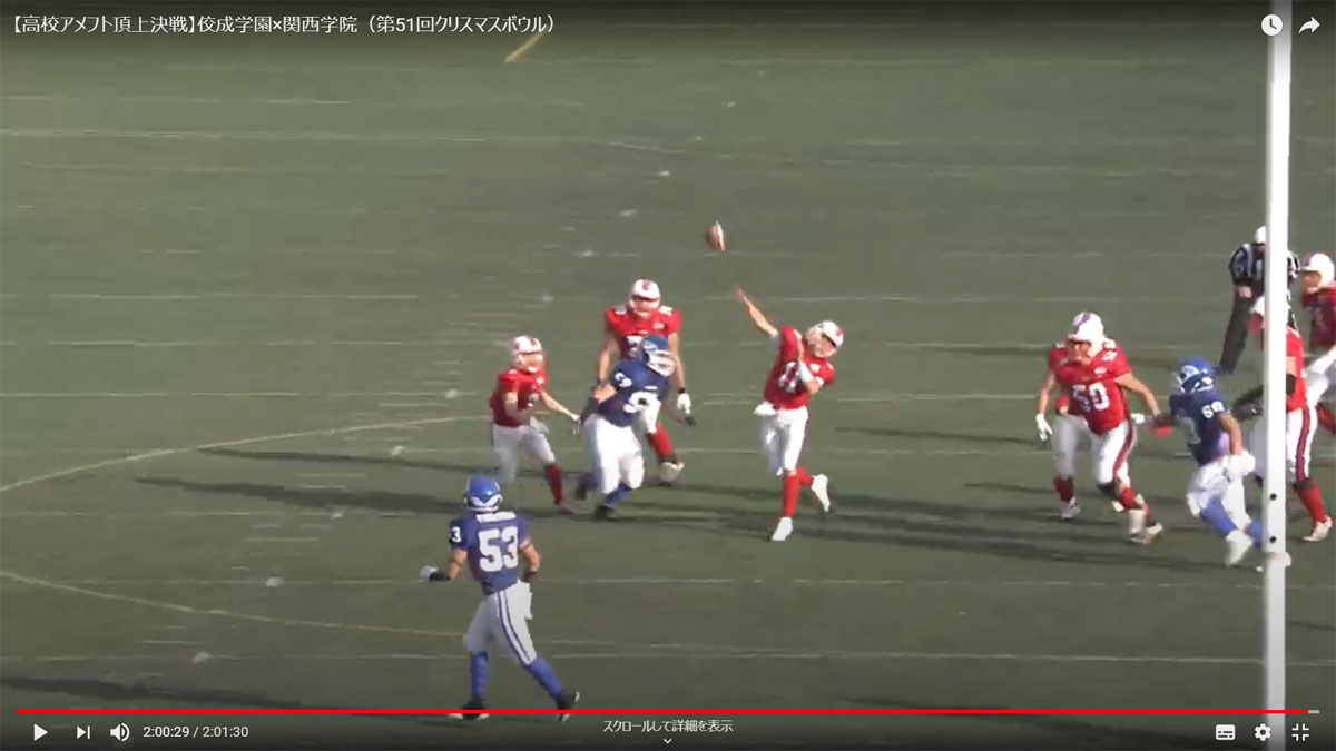 クリスマスボウル 佼成学園 QB 近田 (11) 残り2秒、最後の攻撃 44ヤードのヘイルメリーパス成功