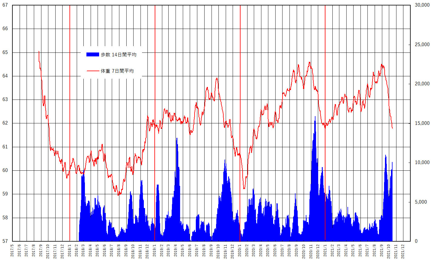 2021年10月15日 歩数・体重