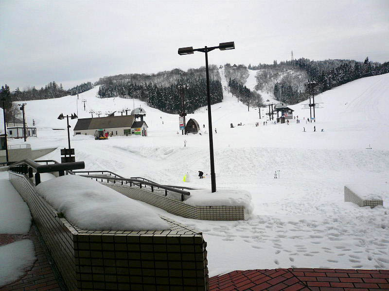 ニューグリーンピア津南は250億円もの大金を投じて作られた大規模年金保養基地「グリーンピア津南」が破綻し、その尻拭いとして、2005年5月に新潟県津南町にわずか2億円譲渡され現在は医療法人財団・光善会グループに民間委託されてニューグリーンピア津南として営業が継続されている一大リゾート施設です。 広い敷地に、ホテル・ゴルフ場・スキー場・体育館・プール・テニスコートなどが整備されています。 私達が収めた年金保険料を流用してここまで立派な施設を作る必要性はなかったことは歴然です。 また作っても年金加入者に対するPRも不十分で知名度も低く利用者も少なく、また管理運営に膨大な経費が掛かって、当然赤字運営であり、さらに年金保険料でその穴埋めがされてなお年金財政を圧迫していたことは想像に難くありません。年金制度上は破綻することは明らかでした。 これは悪質極まりない歴代政府と社会保険庁の国民不在の政策・施政の典型です。その後、さらなる年金問題が次々に明るみに出ているのが現状です。その意味でここを訪れたことは大変良い社会勉強の機会になりました。 この施設がある土地の地形は特異です。 垂直に見える段丘崖をジグザグで登りきったら、そこは真っ平らです。 この真っ平らな土地は開拓されて広々とした田畑が広がっています。 高い台地ですから農業用の水を確保するのが難しかったと思います。 今はダム湖とため池が整備されています。この台地は見事な河岸段丘で「津南高原」と呼ばれています。この「津南の河岸段丘」を空から眺めるとこのようになります。 2月末にはこの3人組でフランスのシャモニーでヨーロッパアルプススキーとモンブラン大氷河滑降を楽しみます。