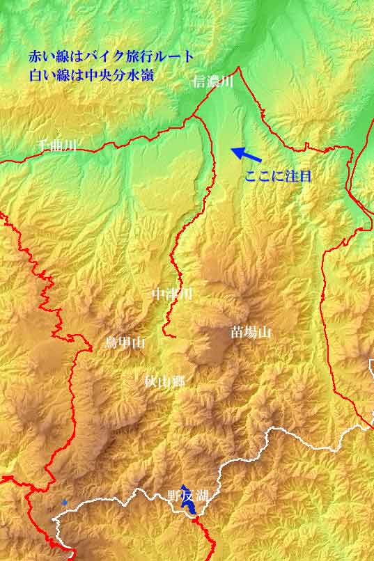 以前、オートバイ旅行で、野沢温泉から千曲川、信濃川に沿って津南の町を経て十二峠を越えて湯沢に抜けました。 清津川と信濃川が合流する地点(左の地図の赤い線で示すコースの一番上の屈曲点)から右折して、十二峠へ向かうとき、南西の方向に異様な地形を見ました。 連続する壁のような高い崖の上に真っ平らな台地が広がっている光景です。北アメリカのグランドキャニオンのようでそれをもっと優雅にした風景です。 この場所にたまたま行く機会がありました。 2007-2008シーズンの初スキーでニューグリーンピアスキー場へ湯沢からバスで行きました。 写真集はこちら この260億円の年金保険料を流用して作られた大規模年金保養施設「グリーンピア津南」は破綻し、わずか2億円で津南町に売却されて「ニューグリーンピア津南リゾート」として民間が受託運営しています。平なところの南のくびれているあたりがこのリゾートです。 青い矢印の先端あたりは真っ平らで、開拓されて雪の下に広い田畑が広がっています。 津南高原と名付けられたこのテーブルのような台地と、中津川をはさんで西側の沖の原台地は、第4紀苗場火山(160万年前以降)の流出溶岩が作ったものです。その後多くの火山の噴火による火山灰が堆積し、新たな苗場火山の噴火による溶岩が流れました。その間に中津川と釜川による侵食や平らな河床の形成、そして地盤隆起が繰り返され何段もの河岸段丘を作り上げました。 スキーから帰ってから「秋山郷の地学案内」という本を入手して、この地形のできたメカニズムを知ることができました。この本ではここを「日本一の河岸段丘」と書いています。 江戸時代に出版された地誌である鈴木牧之(すずきぼくし)の「北越雪譜」(ほくえつせっぷ)では「雪のすごさ」に加え、このあたりの地形の特徴や不思議さをよく伝えています。