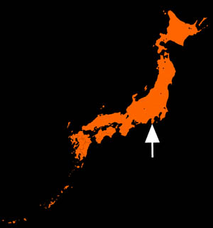 正面は伊豆諸島 左は大島、中央は利島(手前の岩場は神子元島)、右は新島