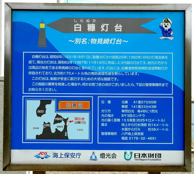 青森県 白糠灯台 別名 物見崎灯台