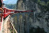 氷河特急でサンモリッツからツェルマットへ。 岸壁のトンネルから出ると高い石の橋 |