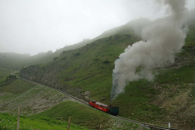 ブリエンツ湖からロートホルンへは蒸気機関車の登山列車 |