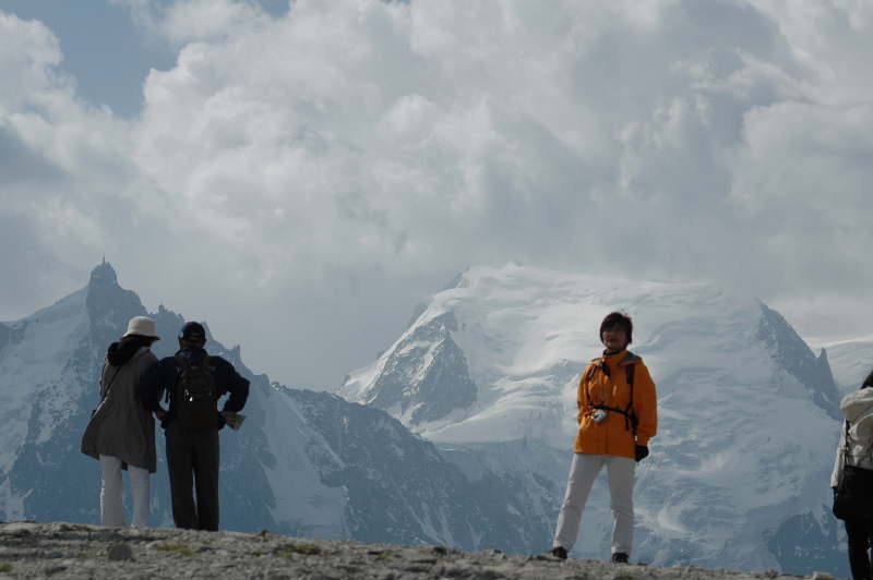 シャモニーのブレバン展望台に登りモンブランと尖塔峰を望む |