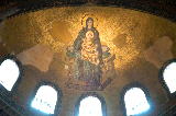 3月 トルコ共和国 イスタンブールアヤソフィア教会のモスクの天井に描かれている聖母子モザイク画 しっくいで塗り隠されていた |