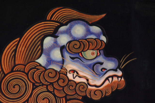 3月 静岡県 久能山東照宮 日本平とロープウェーでつながっているが、海岸側から徒歩で登る 壁に描かれた獅子(部分) |