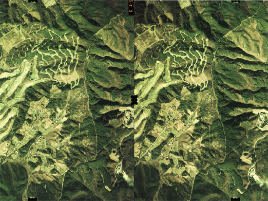 2006年10月18日追記 好天気の10月12日と13日、オートバイで福島県の中央分水嶺の9つの峠を越える旅をした。 中央分水嶺は福島県北部では、荒々しい火山の吾妻連山と、それを南に下ると、会津と安積を隔てている比較的高度の低い嶺々である。 白河と会津を結ぶ県道37号線(白河羽鳥線)が分水嶺を越える真名子峠から南はより厳しい山岳になり、甲子峠は未だに自動車では越えることができない。 盆地の会津は周辺との交通には必ず「峠」が介在する。その地勢が会津の文化的、政治的特徴を形成したといえる。 会津は明治維新の戊辰戦争では母成峠などでの戦役でついにその孤高の独立性が失われ、明治以降の度重なる交通路の開発を経て今に至ったことを思えば、会津は「パスハンター」を惹きつけてやまない。 7月13日再改訂 青字部分 「塩尻峠と善知鳥峠の間の塩嶺高原別荘地のあたりは大規模開発で中央分水嶺のある丘陵地が削り取られてしまった」、と書いたが、2万5千分の1の地図で詳細に調べたところ、別荘地は分水嶺の南側斜面に造られており、もともとの分水嶺は手がかけられておらず、もとのままであることを確認した。 また、連続した航空写真を使って、この部分の高低が立体的に見えるように3Dステレオ写真を作成した。これはステレオビューアを直接パソコンの画面に当ててこの空から見下ろしたこの土地が立体的に見える。航空写真の撮影間隔と実際の両眼の幅が極端に異なるから高低差が誇張されて見え、里山がグランドキャニオンのように見えるのはご愛嬌。 2006年7月改訂の辞 2006年の6月から7月にかけて2度にわたって、オートバイで長野県の分水嶺とそれを越える峠を辿る旅にでた。そして帰って調べてみると、昨年の12月に書いた文章に多くの誤解と無知による間違いが散見されたので、それらを補正した。ひとつは、分水界が動くことの原因として火山活動と大規模工事と書きましたが、他に自然活動で「河川争奪」という現象で分水界が移動することが結構あるということを認識した。また道路地図では分水嶺が分かりづらかった塩尻峠と善知鳥峠の間、白樺湖・霧ヶ峰、野反湖のあたりは、実際に行ってみて分水嶺(界)とそれを越える峠の位置を確認し、また航空写真や2万5千分の1の地図でも確認した。 2005年6月のオートバイによるヨーロッパアルプスの峠越えの旅行では、ヨーロッパ大分水嶺(分水界とも)にこだわった。降った雨が北海に流れるのか、地中海に流れるのか、黒海に流れるのかを決める嶺に惹かれ、その嶺を越える峠の数々に挑戦した。 さて、日本列島における日本海と太平洋水域を分ける嶺や流域境界を「中央分水嶺(分水界)」という。山岳地帯ではこれらの分水嶺(界)(divide, watershed)のうち一番低い地点(もっと正確に言うと、歩いている尾根・山稜などの標高の変化がマイナスからプラスに転ずる地点)の多くは、街道や林道が越える「峠」(すなわち、道の方から見ると標高の変化がプラスからマイナスに転ずる地点)となる。 「最も低くて最も高いのなあに?」というクイズの解答となる「峠」というポイントは数学・物理学上で「特異点」と呼ばれ珍重される。 これらの中央分水界を越える峠の内、車かオートバイで通れる峠の数は、果たしていくつあるだろうか、と考えている内に「中央分水嶺(界)の全峠および横断道路の走破」を思いついた。最初は自動車かBMWオートバイで通れる峠や道に限り、将来はオフロードのバイクや自転車で林道の峠を加え、次にハイキングで登れる峠、そして、さらに峠と峠を結ぶ分水嶺の一部縦走へと広げ、そして、そして、不可能ではあるが、中央分水嶺(界)の全線縦走へと夢だけは膨らむ。