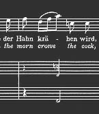 きょう「あっちむいてほい」で最後に「躓く」と書いていて思い出した。日本語の「新しい方の契約の書」のなかで「躓く」と訳されている重要な表現があるが、他の言葉の方が分かり易いと思うが。 私の少年時代には近くでは鶏を飼っている家もあり、朝になるとあちこちでその元気な声がするのを聞いてほのぼのとしたものを感じていたが、このピーターさんのケースの雄鶏の声は、ピーーンと張り詰めた空気を突き破るような声が似合う。J.S.バッハさんはその鳴き声を右の楽譜で表現している。日本語の歌詞であれば、「コケコーッコ」がこの音符の配列にぴったり合うのだが、それでは歌手も聴衆もオーケストラも吹き出してしまって、この緊迫した場面の音楽にはならないだろう。 こ
