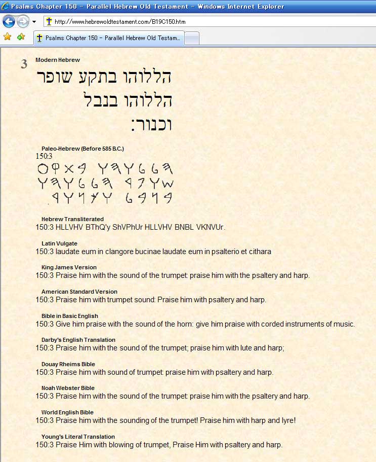 一昨日、昨日につづき、しつこく詩篇150-3。 古代ヘブライ語 (Paleo-Hebrew before 250B.C.) は次のようになっていました。