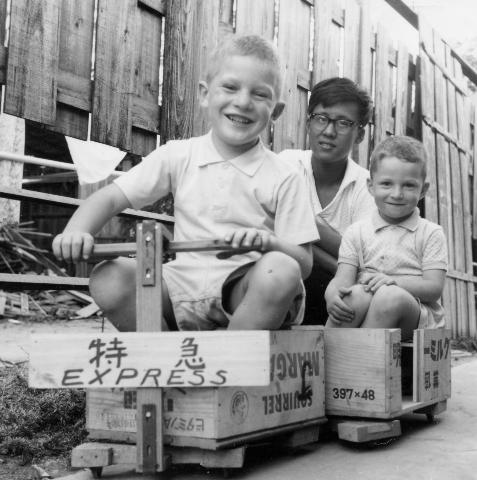 Portis一家には二人の息子、Jon (6歳)と Stephen (4歳)がおり、私は二人の遊び相手をたまわった。これこそが生きた英語習得の実践になった。「ネスパ(場ではなく発破の「ぱ」)」と聞こえるのが「next