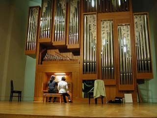 コンサートは府中市の芸術の森にあるウィーンホール。パイプオルガンを備えた500人規模の立派なこのホールは響きが良く、音楽評論家の宇野功芳さんによると「日本で一番良いホール」だそうだ。演奏する側では舞台上での自分の音がよく響いて聞こえることは確かであるが、客席で聞いてみると残響が長くてやや響きすぎの感がある。