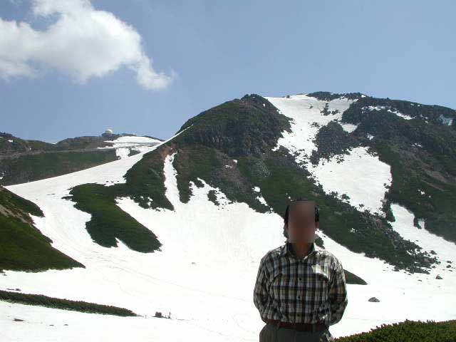 コロナ観測所が設置されている峰の向こうの乗鞍岳頂上(見えない)を分水嶺が通る。