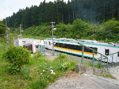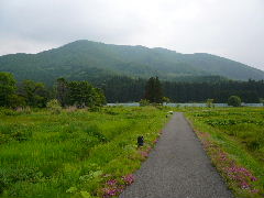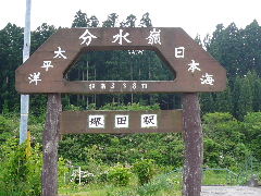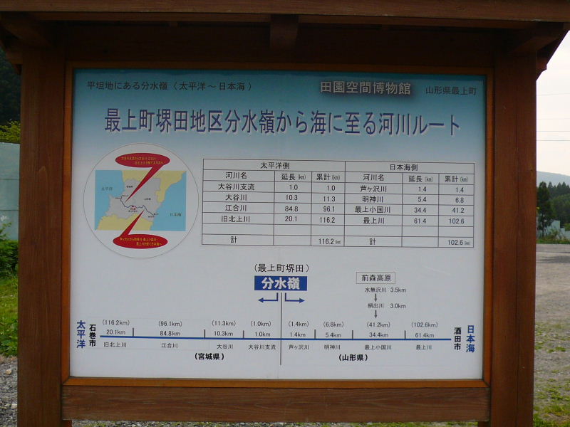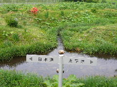 (実は太平洋側の)沢の水を用水路でここまで引いてきて、向こうからここに流れて左右に分かれる